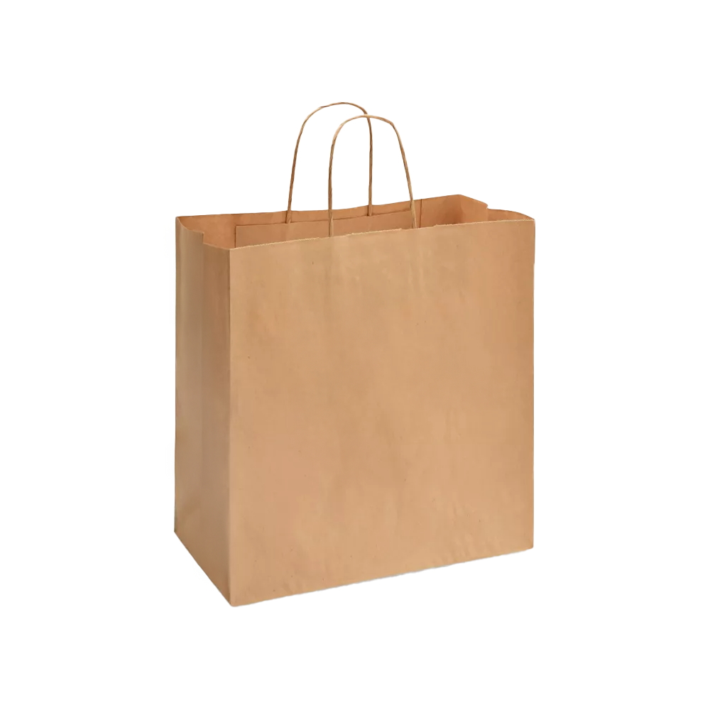 The EP003355 ECO-L Kraft Paper Bag with Handle is an eco-friendly and durable packaging solution designed for businesses that prioritize sustainability and convenience. With dimensions of 13" x 7" x 13" (L × W × H), this kraft paper bag features sturdy handles for easy carrying, making it perfect for retail, takeout, and gift packaging needs.