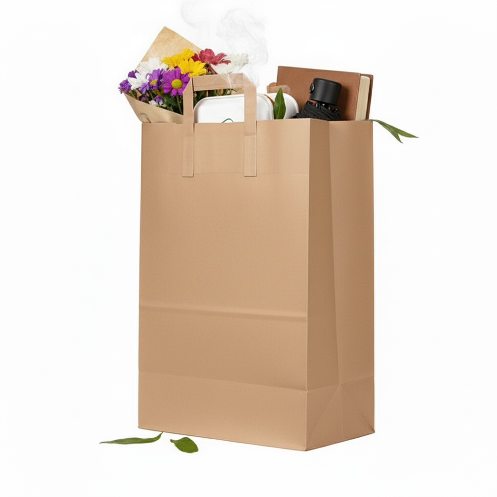 A reliable, durable, and environmentally conscious choice for businesses seeking high-quality kraft paper bags with added convenience.